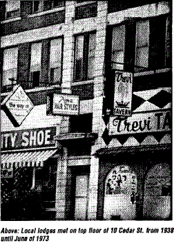 The Pedestals were also the product of local industry though not by any means as costly as the Altar. The Building itself was not at all comfortable. The roof leaked badly and necessitated the use of pans to catch the drip in rainy seasons, those the same pans became furnished amusement and diversion in the performans of the Ceremonies of the Lodge, particularly in the First Degree. The Hall was heated by a stove which had a reputation of disappearing without authority or permission from the Lodge, a serious fault indeed. The adjoining Hall and rooms were occupied by other fraternal societies, dealing with the Odd Fellows and the Sons of England in connection therewith finding mention in the earlier records. On the whole, the brethren showed considerable and commendable zeal in fitting and furnishing these quarters as well as they did, in spite of many difficulties which lay in their way.