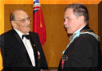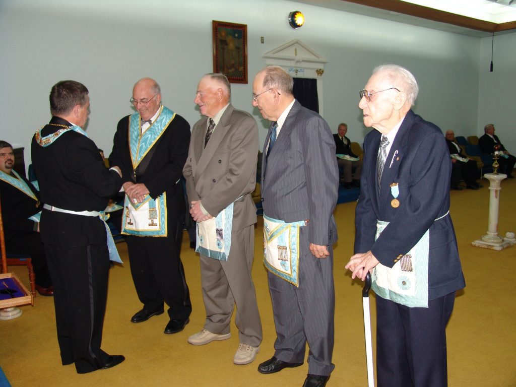 Service Pins Awarded - October 2004. W. Bro. R. Bryson receives his 50 Years as a Past Master pin.
